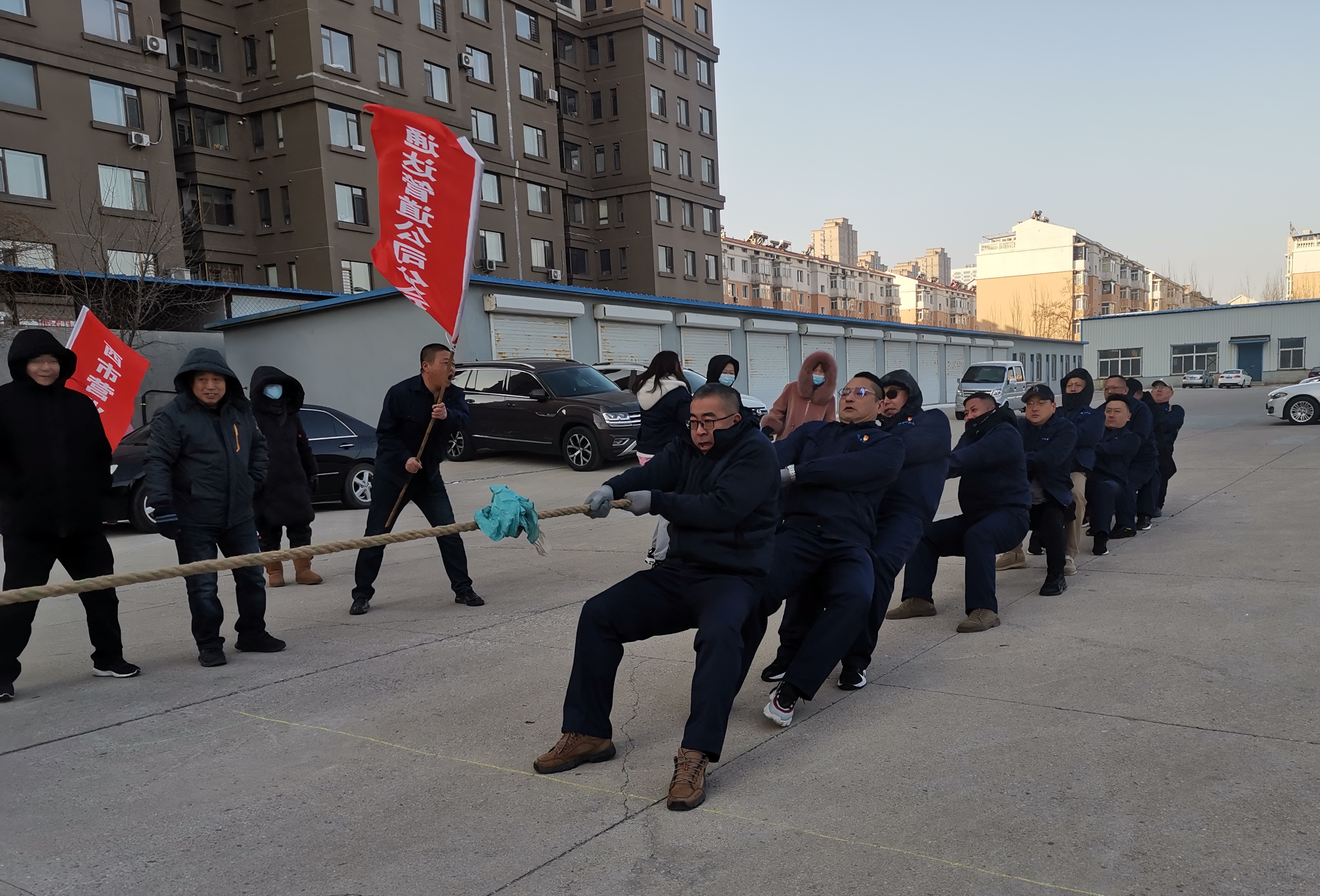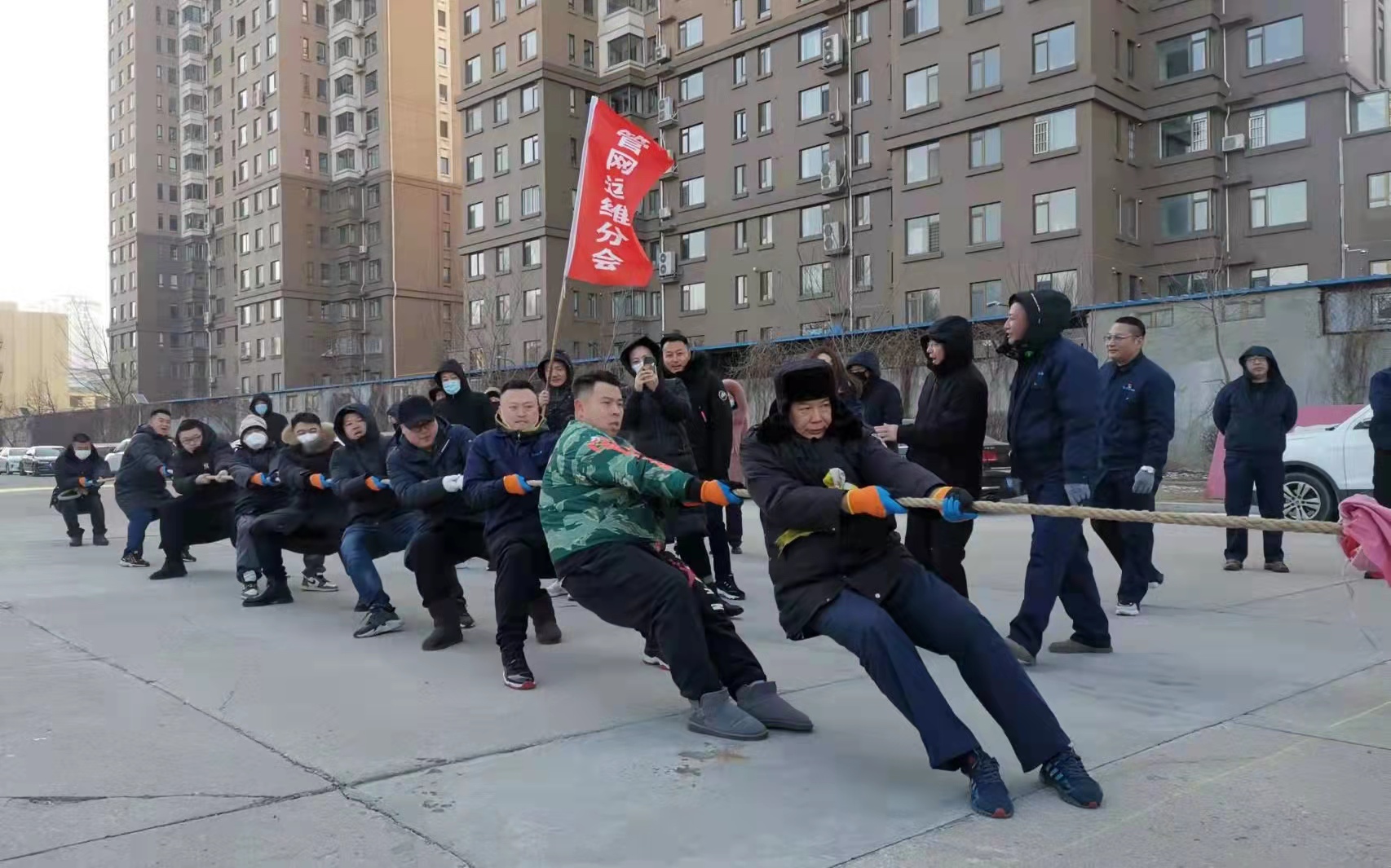 1月26日上午8:20分,集團公司領導與基層工會干部和會員近400人,集聚于公司樓前廣場,相繼展開了“力拔山兮拔大河”和“愛的魔力傳遞”兩項團體活動?!傲Π紊劫獍未蠛印保焊麝牨坝颜x第一,比賽第二”的原則,當比賽的哨聲一響起,雙方隊員們使出渾身力氣把繩子向后拉,繩子中間的紅繩左右搖擺。兩邊隊員都整齊地往后倒、向后退,旗手、安全員也在隊伍旁邊助陣加油,場上助力吶喊聲浪如潮……“愛的魔力傳遞”體驗的是個人積極與同伴合作,多人通過轉圈圈將紅布條纏到隊友身上,依次接力,分享趣味行走的快樂。場上隊員集中心智、同心協力,場外觀眾加油助威、歡呼吶喊,氣氛熱烈。在各參賽隊的努力下,“力拔山兮拔大河”前四名分別是:管網運維中心、站前營業(yè)分公司、通達管道工程有限公司、第六凈水廠四個代表隊?!皭鄣哪Я鬟f”前四名分別是:機關三分會、通達管道工程有限公司、管網運維中心、路南水廠四個代表隊。