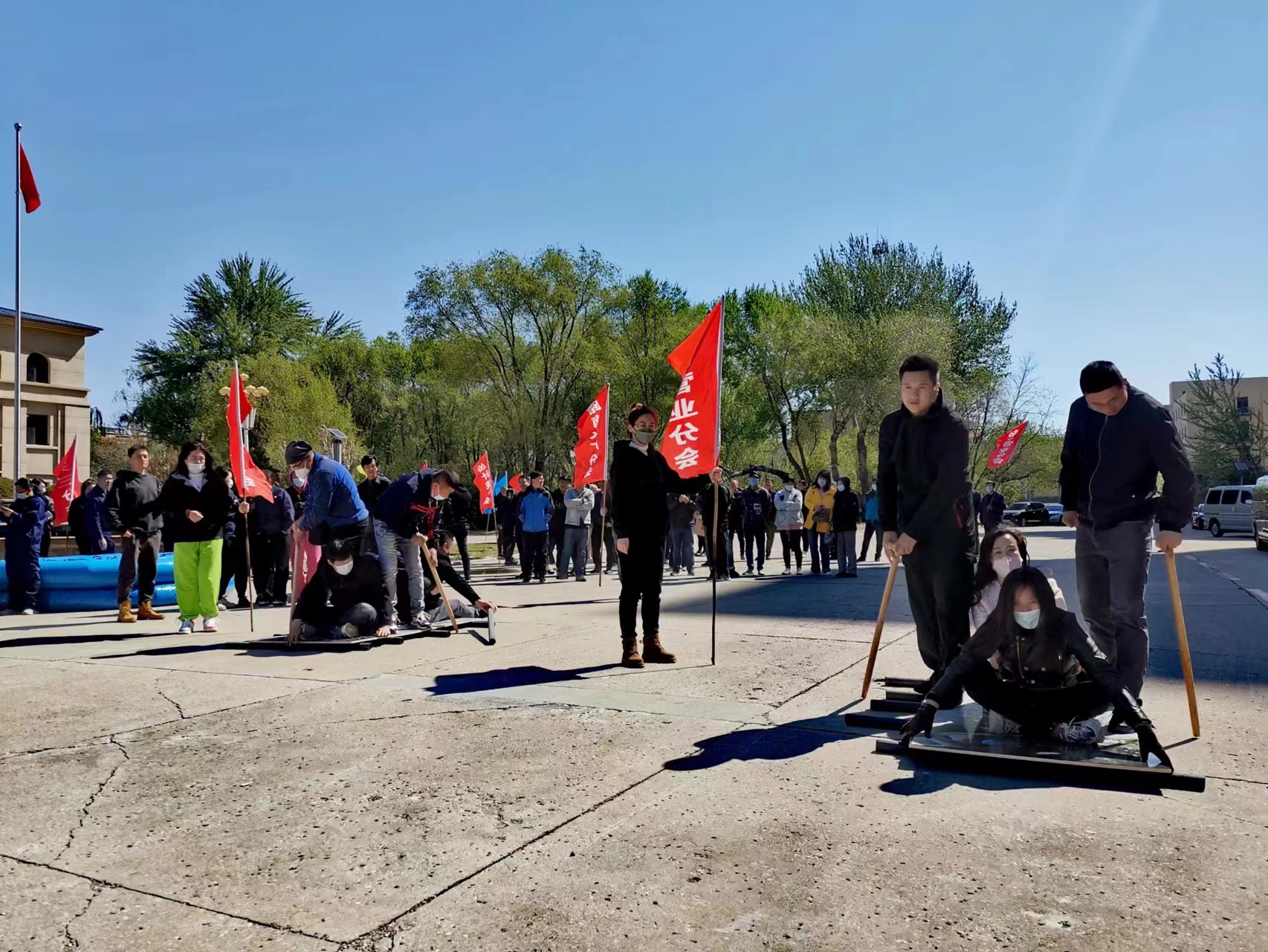 4月26日上午8:20分,集團(tuán)公司領(lǐng)導(dǎo)與基層工會(huì)干部和會(huì)員近500人,集聚于公司樓前廣場,相繼展開了“眾人劃槳開大船”和“八仙過海”兩項(xiàng)趣味性團(tuán)體拓展活動(dòng),寓意和引導(dǎo)眾人心往一處想、勁往一處用,以默契的團(tuán)隊(duì)協(xié)作攻堅(jiān)克難。