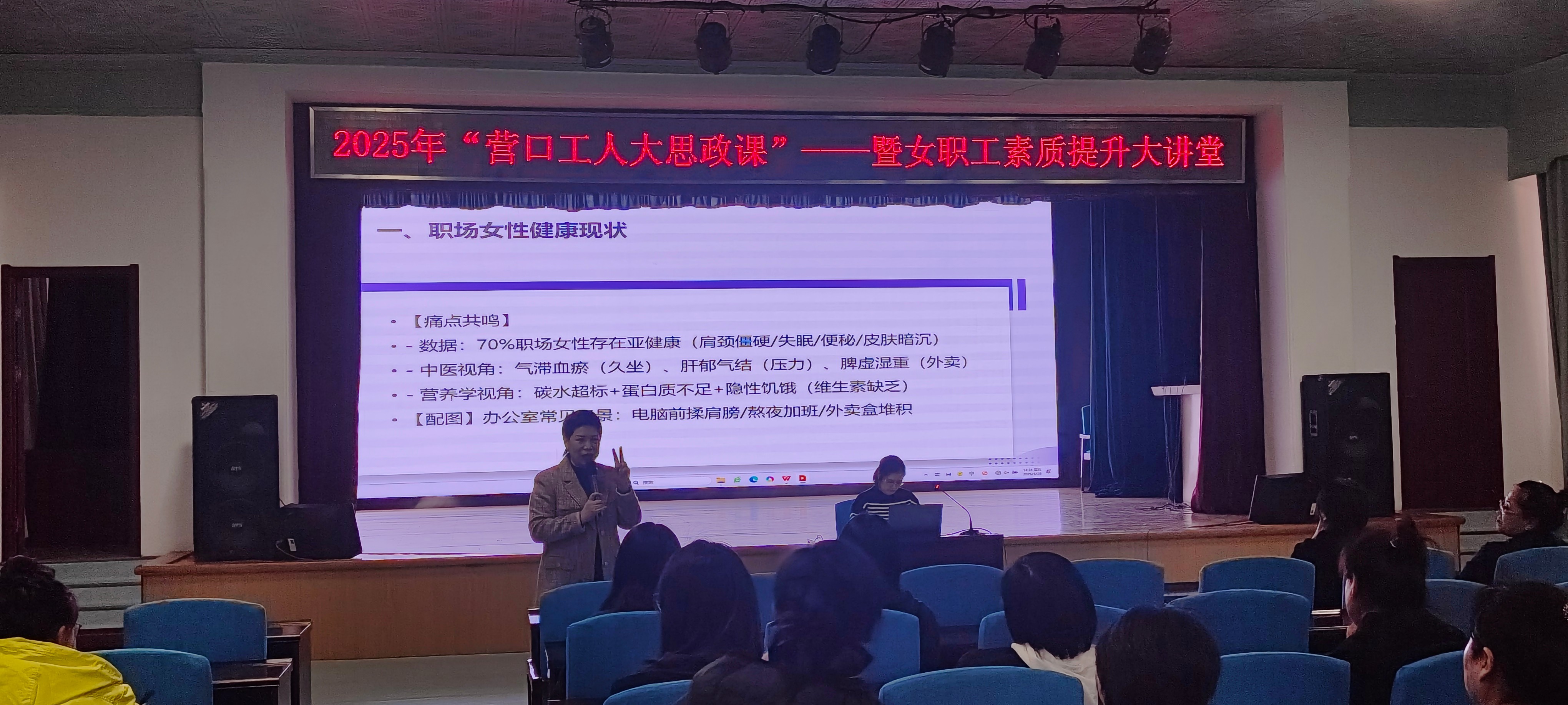 為進(jìn)一步推進(jìn)集團(tuán)女職工素質(zhì)提升工程,關(guān)愛廣大女職工的身心健康,增強(qiáng)女職工預(yù)防疾病的意識和能力,水務(wù)集團(tuán)工會深入開展“營口工人大思政課”——暨女職工素質(zhì)提升大講堂活動,于3月28日下午,在三樓大會議室,組織了專場女職工健康知識講座,集團(tuán)150余名女職工參加了活動。
