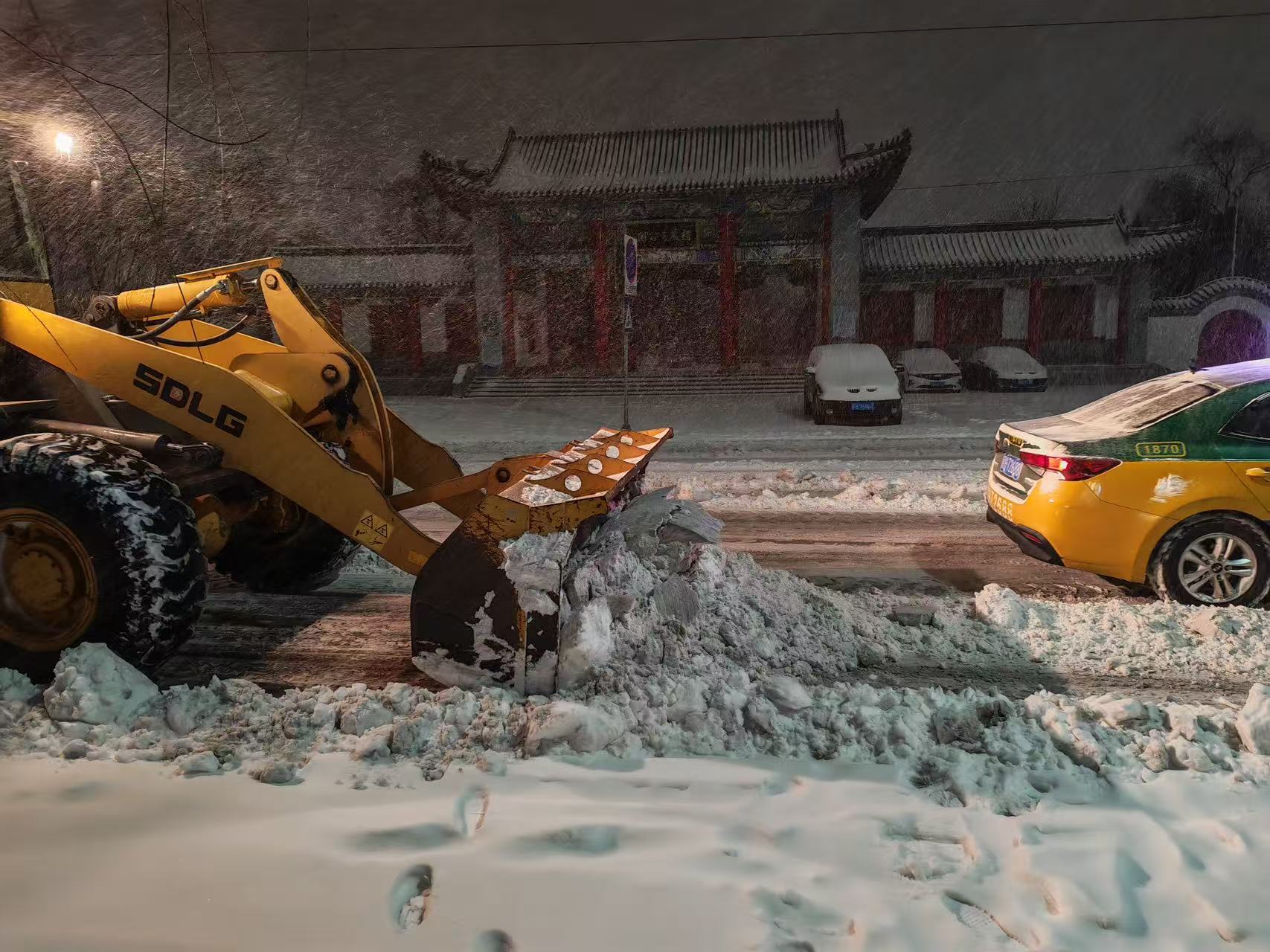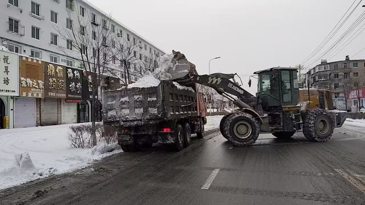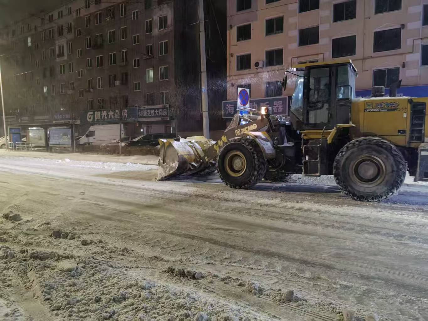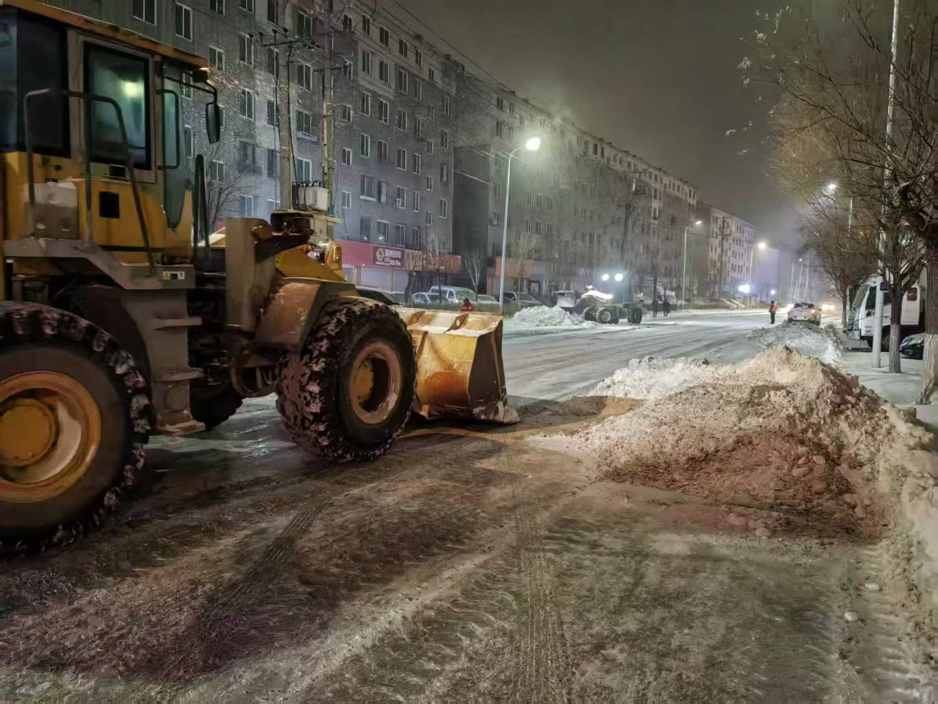 雪情就是命令,保障即是責(zé)任。集團(tuán)組建80余人的應(yīng)急清雪隊伍,調(diào)配推雪鏟車8臺,裝雪鏟車2臺,運雪車8臺,做好全流程準(zhǔn)備。凌晨3點,天色未亮、寒風(fēng)料峭,清雪隊伍已全員集結(jié)、整裝出發(fā)。機械鏟車開道破冰,人工隊伍跟進(jìn)清掃,人機協(xié)同高效作業(yè),從新興大街東新路口到西環(huán)路口全力清除積雪,為市民出行掃清障礙。