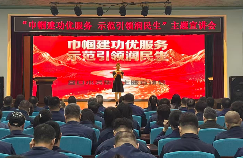 為大力弘揚(yáng)巾幗奮斗精神,充分發(fā)揮先進(jìn)典型示范引領(lǐng)作用,持續(xù)提升水務(wù)民生服務(wù)質(zhì)效,3月26日,水務(wù)集團(tuán)舉辦“巾幗建功優(yōu)服務(wù) 示范引領(lǐng)潤(rùn)民生”主題宣講會(huì)。市婦聯(lián)黨組書記、主席孫艷輝應(yīng)邀出席,集團(tuán)領(lǐng)導(dǎo)班子成員、黨員群眾代表共170余人參加會(huì)議。