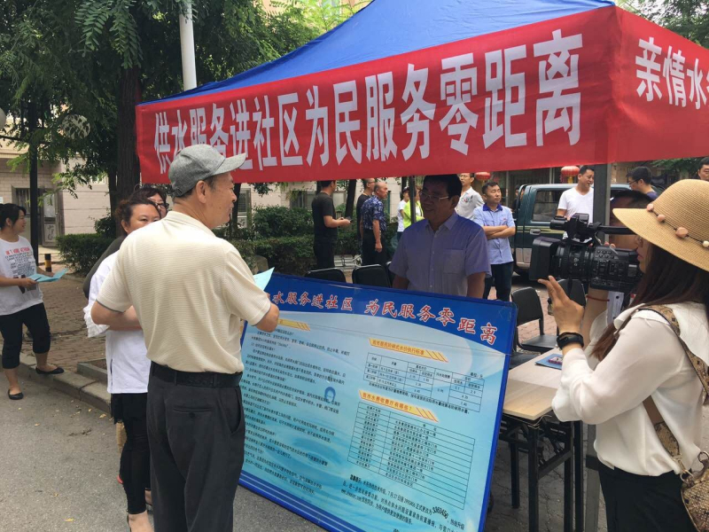 活動(dòng)現(xiàn)場(chǎng),氣氛熱烈,共產(chǎn)黨員們佩戴黨徽,熱情接待小區(qū)內(nèi)用戶的各類咨詢與訴求,用戶對(duì)水務(wù)集團(tuán)工作人員的解答都非常滿意。現(xiàn)場(chǎng)還設(shè)置了涵蓋供水價(jià)格、用水常識(shí)等內(nèi)容的宣傳版10塊及“供水服務(wù)進(jìn)社區(qū),為民服務(wù)零距離”、“親情水務(wù)、情潤(rùn)萬家”、水務(wù)熱線3363456等內(nèi)容的宣傳條幅,“跟著郭明義學(xué)雷鋒,水務(wù)集團(tuán)在行動(dòng)小分隊(duì)”志愿服務(wù)的旗幟迎風(fēng)飄揚(yáng)……