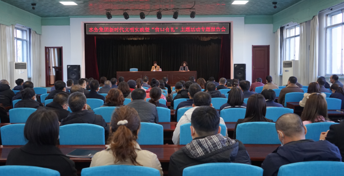 為貫徹落實(shí)習(xí)近平總書記關(guān)于新時(shí)代文明實(shí)踐建設(shè)的重要講話精神以及對弘揚(yáng)雷鋒精神、發(fā)展志愿服務(wù)事業(yè)作出的一系列重要指示,推進(jìn)新時(shí)代文明實(shí)踐志愿服務(wù)事業(yè)持續(xù)健康發(fā)展,11月27日下午,營口水務(wù)集團(tuán)召開新時(shí)代文明實(shí)踐暨“營口有禮”主題活動專題報(bào)告會,集團(tuán)領(lǐng)導(dǎo)班子成員、全體中層干部、先進(jìn)模范代表、窗口代表、新時(shí)代文明實(shí)踐志愿者代表等130余人參加了此次會議。