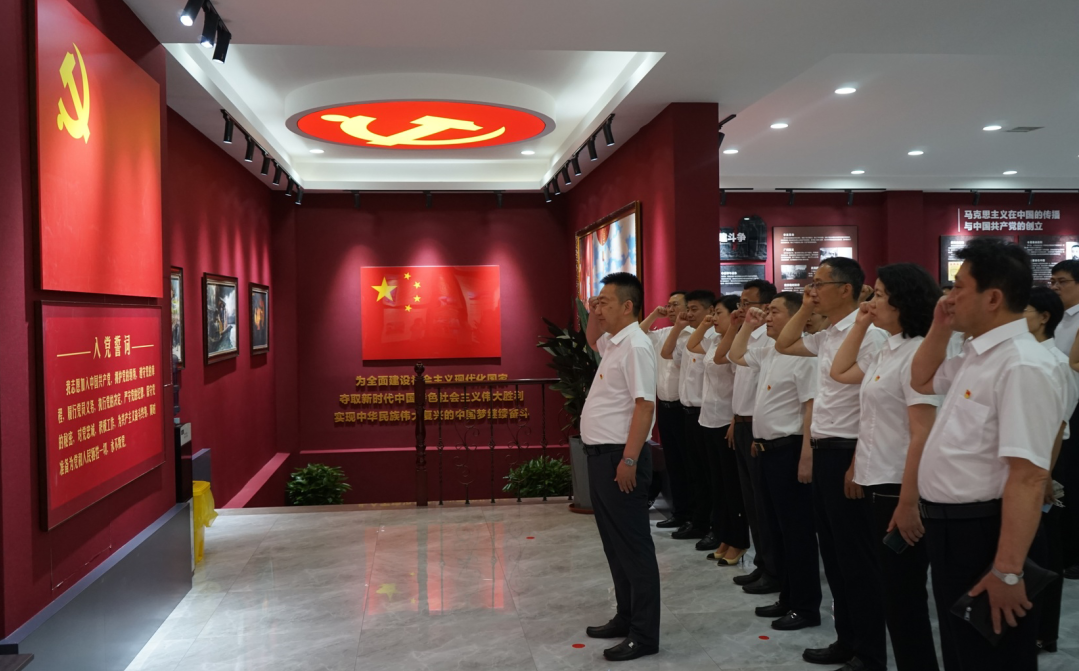 教育基地一組組圖片和文字生動地還原了中國共產(chǎn)黨的百年奮斗歷程,從中國人民反帝反封建斗爭到中國共產(chǎn)黨的創(chuàng)立,從大革命時期到二萬五千里長征,從全民族抗日戰(zhàn)爭到社會主義革命和建設(shè),從開辟建設(shè)有中國特色社會主義道路到中國特色社會主義走進新時代,全體黨員干部駐足于展板前,仔細(xì)聆聽工作人員的講解,全身心融入到學(xué)習(xí)教育之中。面對鮮紅的黨旗,全體黨員干部高舉右手莊嚴(yán)宣誓,重溫對黨忠誠的誓言,堅定理想信念,增強宗旨意識,矢志不渝,永葆本色。