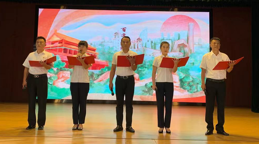 榜樣如燈,歷史為鏡。會(huì)上,楊興超、劉雪蓮兩名新時(shí)代文明實(shí)踐榜樣講述了自己的先進(jìn)事跡;孫慶峰、賈緒雙兩名優(yōu)秀共產(chǎn)黨員結(jié)合自身工作實(shí)際,分享了自己的工作心得;靳林、張震澤兩名黨員結(jié)合黨史學(xué)習(xí)教育,淺談收獲體會(huì)。配樂詩朗誦《榜樣禮贊》、《我愛你中國》、原創(chuàng)作品《聞?dòng)^百年》抒發(fā)了員工們對榜樣的崇尚、對祖國的熱愛、對黨的贊美。